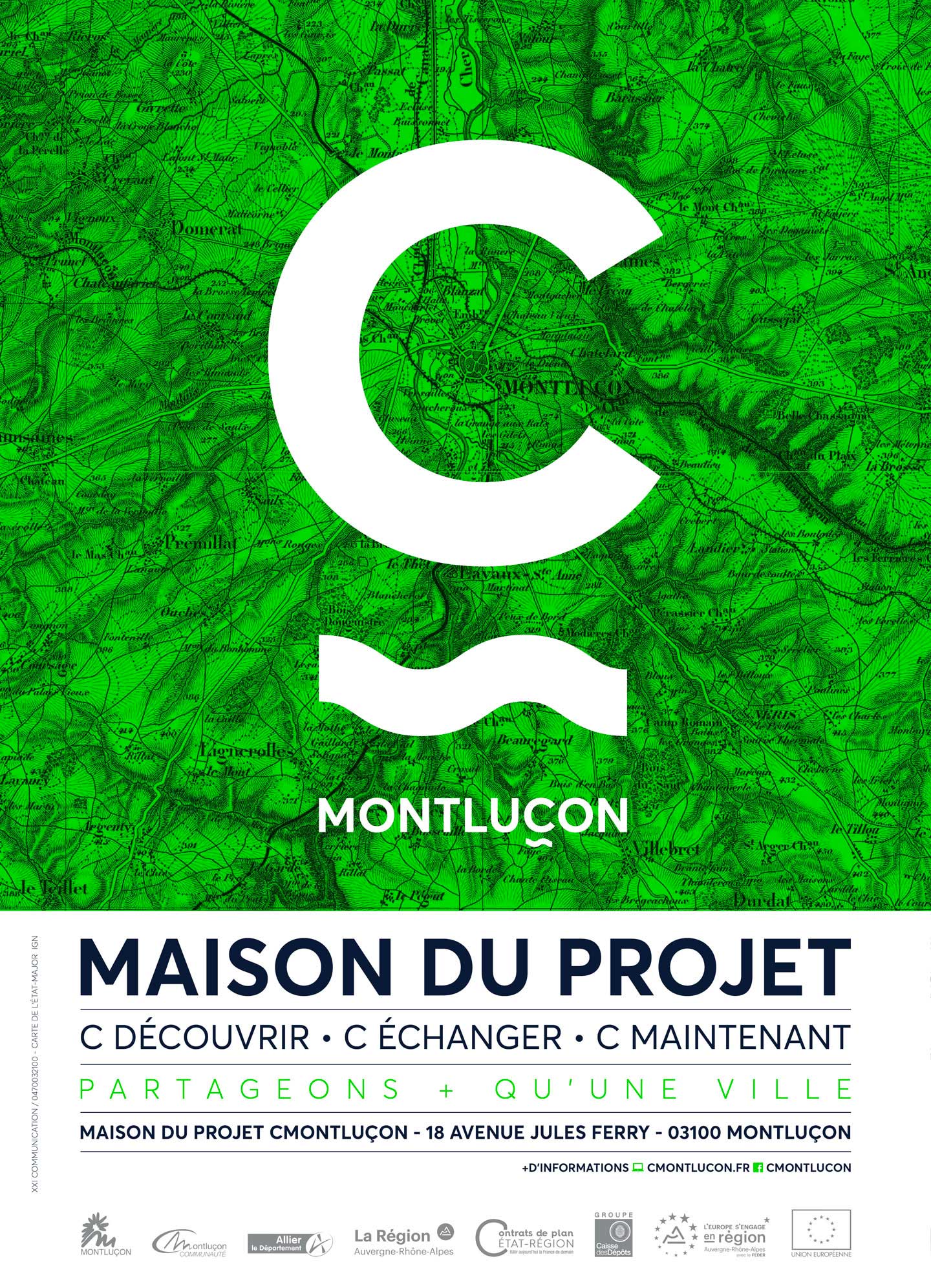 XXI communication, fidèle à ses engagements locaux, accompagne la ville depuis le début de l’opération. Comme tout grand projet urbain, CMONTLUÇON doit s’appuyer sur une image forte à l’échelle de l’agglomération, en suscitant une adhésion des habitants à la démarche.